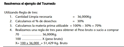 Si conocemos que un producto pierde el 30% cada vez que se limpia, por consiguiente la materia prima utilizable