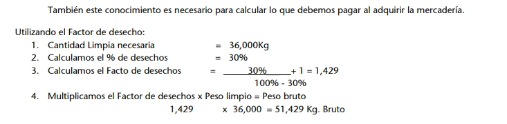 Una forma simple de conocer la cantidad bruta a comprar, conociendo el porcentaje habitual de desecho, es