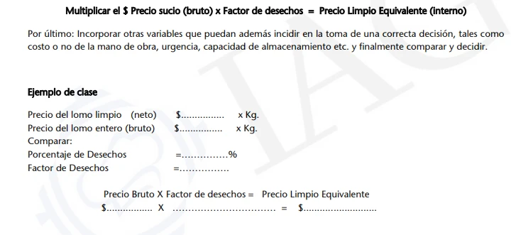 Obviamente el Precio Limpio es superior al Precio Sucio, pues el proveedor que nos realiza esa oferta tendrá en sus costos el cálculo de absorber los desechos, que no nos venderá, más el costo de la mano de obra para limpiarlos.