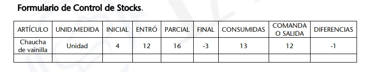 El uso de sistemas de Control de Stocks, parte de las cantidades estipuladas en las recetas, para descargar del Stock las materias primas, en el momento en que se despachan para la venta.