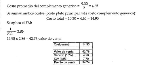 );;- Se suman ambos (costo plato principal más costo complemento genérico) y se aplica el FM