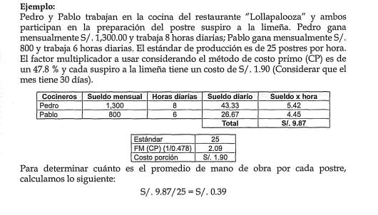Como se mencionó en el capítulo 1, el costo primo es la suma de los materiales (o materia prima) con la mano de obra directa.
