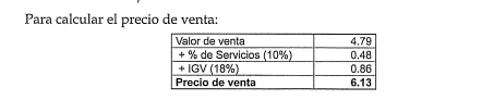 Para calcular el valor de venta: