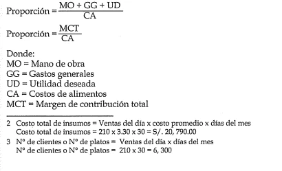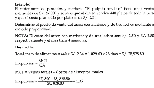 En el método proporcional se consideran todos los costos involucrados en gastronomía (costos de alimentos, mano de obra y gastos generales) además de la utilidad deseada