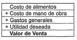 ~ Sumar este resultado al costo de alimentos del plato. Es decir: