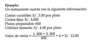 Valor de venta= Costos variables (dividido unidades producidas)+ Costo fijos+ utilidad deseada